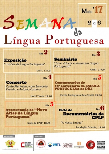 No âmbito das comemorações da Semana da Língua Portuguesa, organizada pelos serviços culturais da Embaixada de Portugal, e em parceria com a Universidade Nacional de Timor Lorosa´e, teve lugar, no dia 2 de maio, a inauguração da exposição “História da Língua Portuguesa” produzida pelo Departamento de Museologia da Universidade Lusófona de Lisboa (Centro de Estudos Interdisciplinares em Educação e Desenvolvimento CeiED) http://www.linguaportuguesa.net/