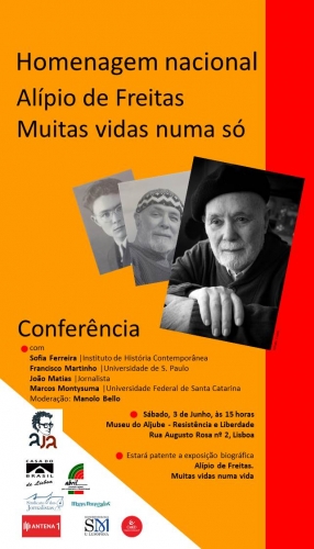 Exposição e conferência "Muitas vidas numa só" realizada no quadro da Homenagem Nacional a Alípio de Freitas – teve lugar no Museu do Aljube Resistência e Liberdade no passado 3 de junho.com a participação de Sofia Ferreira, Francisco Martinho, João Matias, Marcos Motysuma e Moderação de Manolo Bello. O Departamento de Museologia colaborou na montagem da exposição "Muitas vidas numa só" associando-se assim a este justo reconhecimento para quem é um exemplo de vida de luta pela Dignidade Humana. Alípio de Freitas foi durante muitos anos Professor na nossa Universidade e em 2008 proferiu a “Laudatio” na ocasião da atribuição do Doutoramento Honoris Causa em Museologia por esta Universidade a Gilberto Gil, então Ministro da Cultura do Brasil.