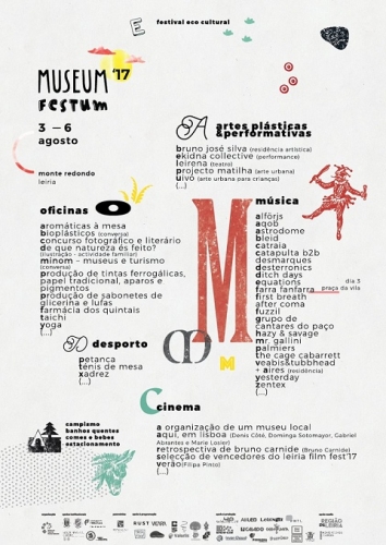 A quarta edição do Museum Festum decorrerá de 3 a 6 de Agosto em Monte Redondo, Leiria. O Museum Festum é um eco festival participativo e comunitário que junta expressões artísticas como a música, artes plásticas e performativas, oficinas e exposições em torno do Museu Monte Redondo, localizado no norte do concelho de Leiria.
