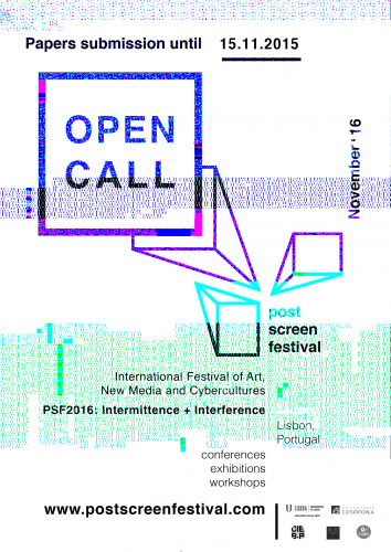 The Post-Screen: International Festival of Art, New Media and Cybercultures is an event part of the POST-SCREEN research project designed and developed within the Cyberart section of the Artistic Studies Research Center (CIEBA) based at the Faculty of Fine Arts of the University of Lisbon (FBA-UL).