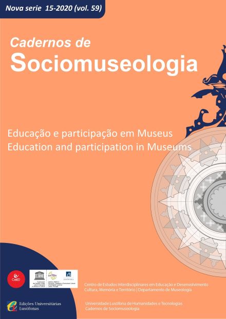 Já está disponível a edição de número 59 dos cadernos, com o tema central "Educação e Participação em Museus", com textos de Bianca de Moura Wild, Tatiana Oliveira, Fernanda Rechenberg, Iara Ferreira de Souza, Tayná Almeida de Paula, Vivianne Valença , Gelsom Rozentino, Maria Florencia Puebla, Cinthya Cuadrao, Ruy Escobar, Elizabeth Pedraza e Natalie Paz Vergas, e Teses & Dissertações concluídas no Departamento de Museologia da ULHT