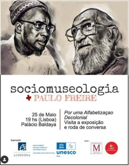 O Grupo de Estudos Sociomuseologia e Paulo Freire, realizará um Visita à Exposição Amílcar Cabral, Palácio Baldaya, no dia 25 de maio propondo uma Roda de Conversa sobre Educação Decolonial. Estas ações decorrem sob a coordenção das Doutorandas em Sociomuseologia da U. Lusófona Mabel Cavalcanti e Claudia Pola.